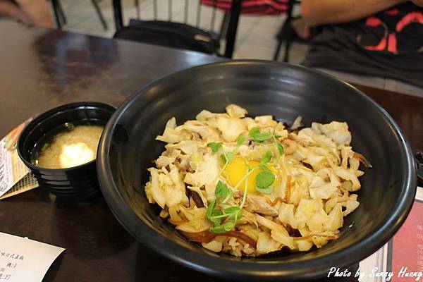丼飯上鋪上滿滿的高麗菜還滿特別的,但醬汁整個很ㄙㄨㄚˋ嘴(台語到底要怎麼描述這個詞彙啦) XD